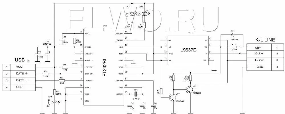 Cheap obd2 communications on k line iso 9141 2 and iso 14230 4. It supports the k line obd2 serial communication between a verhicle and a microcontroller. The k line is not used for intra vehicle communications.